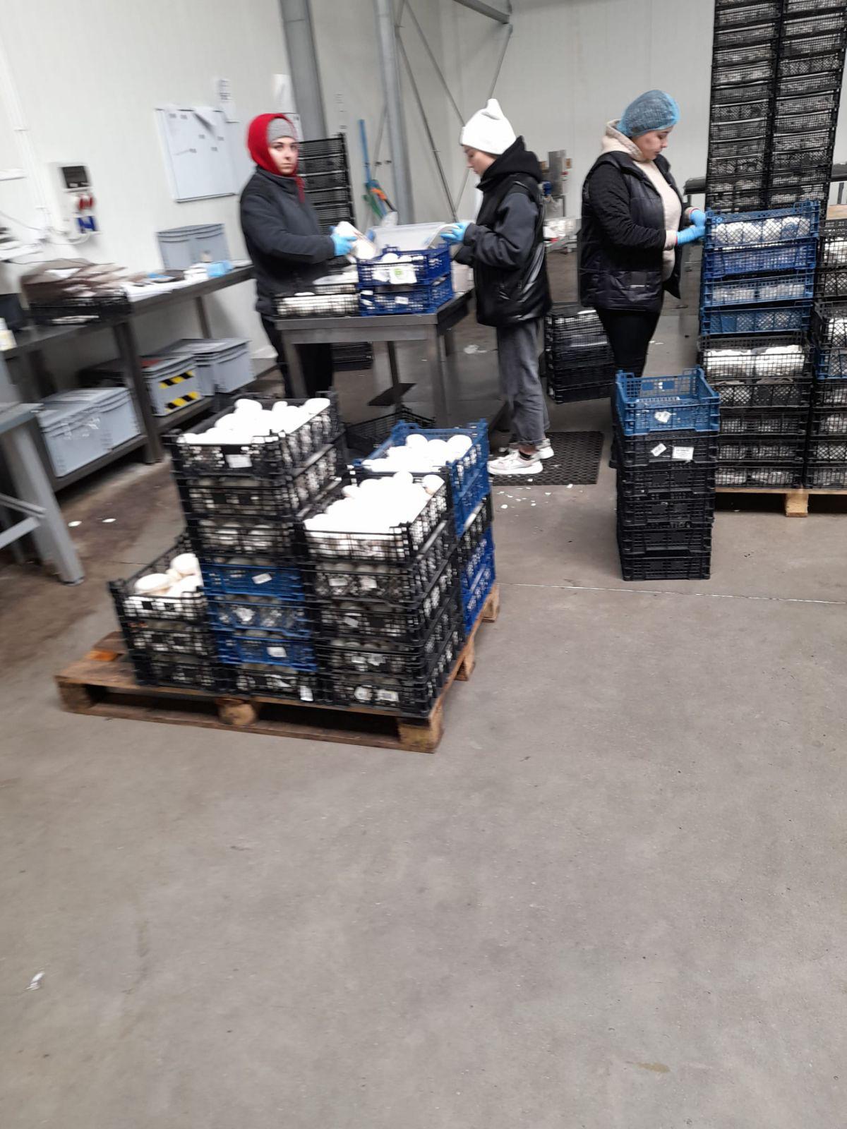 Процесс для женщин: Сбор грибов Сортировка грибов Подготовка рабочего места Поддержание чистоты и порядка на рабочем месте Работа на высоте (сбор осуществляется в залах со стеллажами до 6 полок)Процесс для мужчин: Сельское хозяйство / Сбор грибов